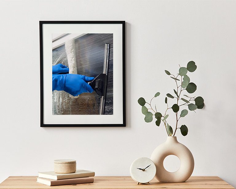 Screen & frame wipe-down – Removing dust & dirt